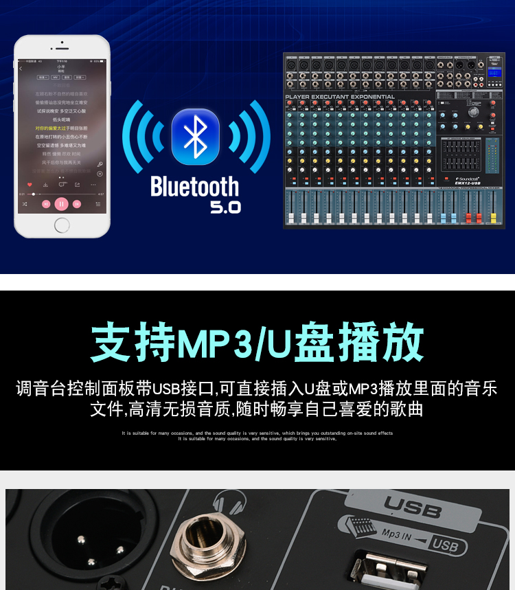 声艺调音台EMX8 12 16 24路带蓝牙混响效果编组舞台婚庆演出热销