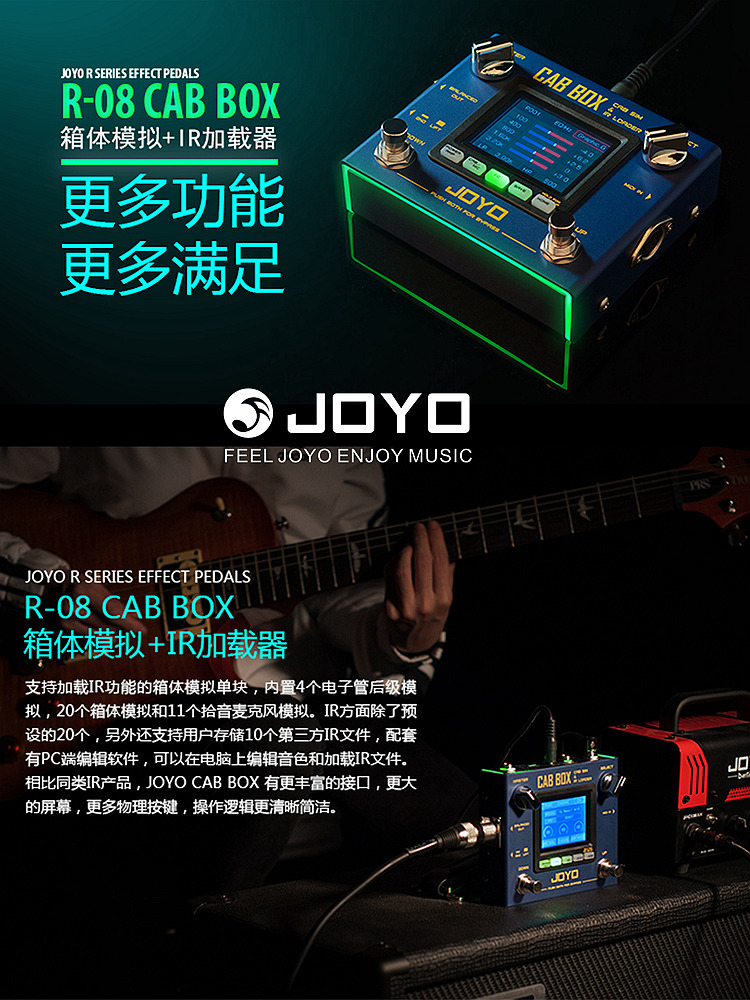 JOYO电子管吉他贝斯音箱箱体模拟IR单块效果器DI盒CAB BOX后级R08